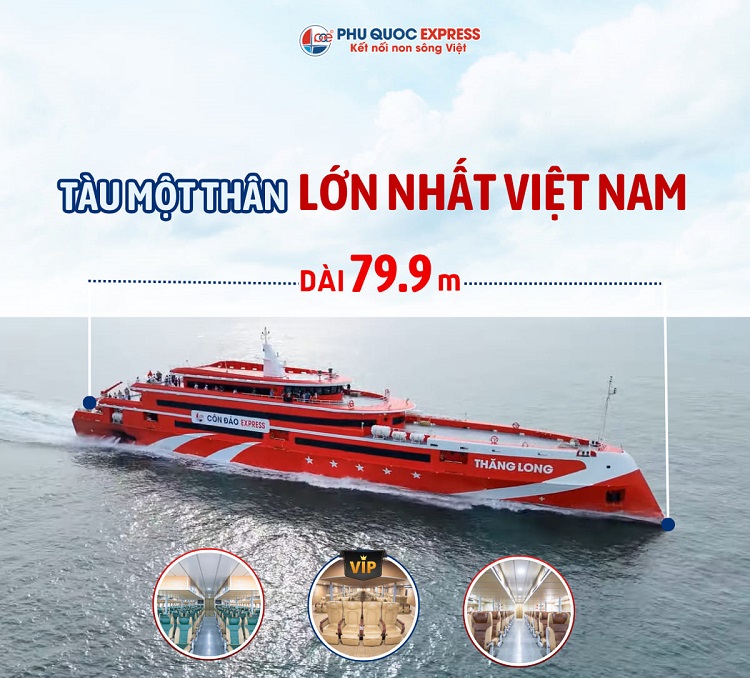Vũng Tàu - Côn Đảo là tuyến tàu cao tốc hiện đại, với siêu tàu Thăng Long 1.017 chỗ lớn nhất Đông Nam Á gồm 4 tầng.