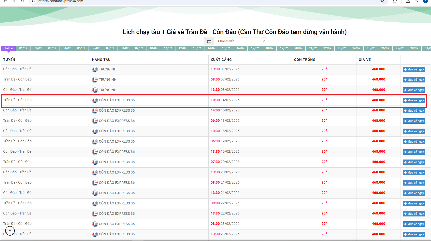 Đặt vé tàu Côn Đảo Express 36 Trần Đề Sóc Trăng - Côn Đảo sớm vào dịp cuối tuần, lễ Tết giữ chỗ tại: https://condaoexpress36.com/. Hotline hỗ trợ đặt vé: 1900599872.