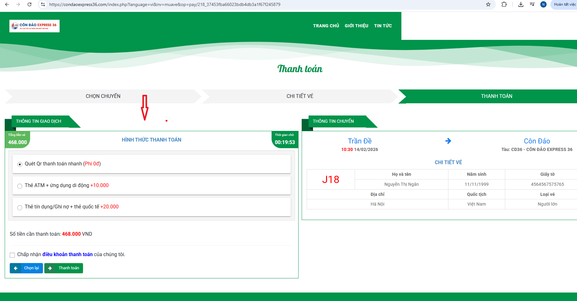 - Kiểm tra lại toàn bộ thông tin hành trình và thông tin cá nhân.
