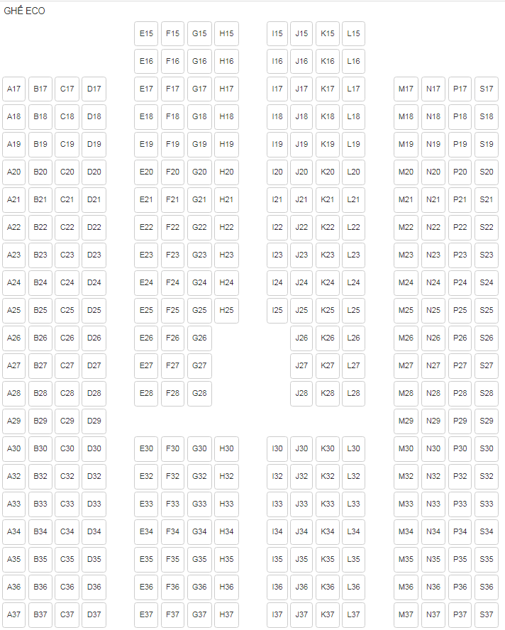 - Ghế phổ thông (Eco) màu trắng: 568 ghế (nằm ở khoang tầng dưới và một phần tầng trên).