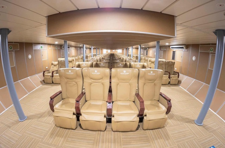 - Khoang VIP: Tổng số 300 ghế da cao cấp, thiết kế êm ái, ngả lưng thoải mái, tối ưu trải nghiệm thư giãn suốt hành trình. Mỗi ghế được trang bị màn hình giải trí riêng, kết hợp hệ thống âm thanh chuẩn quốc tế và sạc không dây. Không gian yên tĩnh, riêng tư, lý tưởng cho cả người đi du lịch nghỉ dưỡng hoặc làm việc trên tàu.